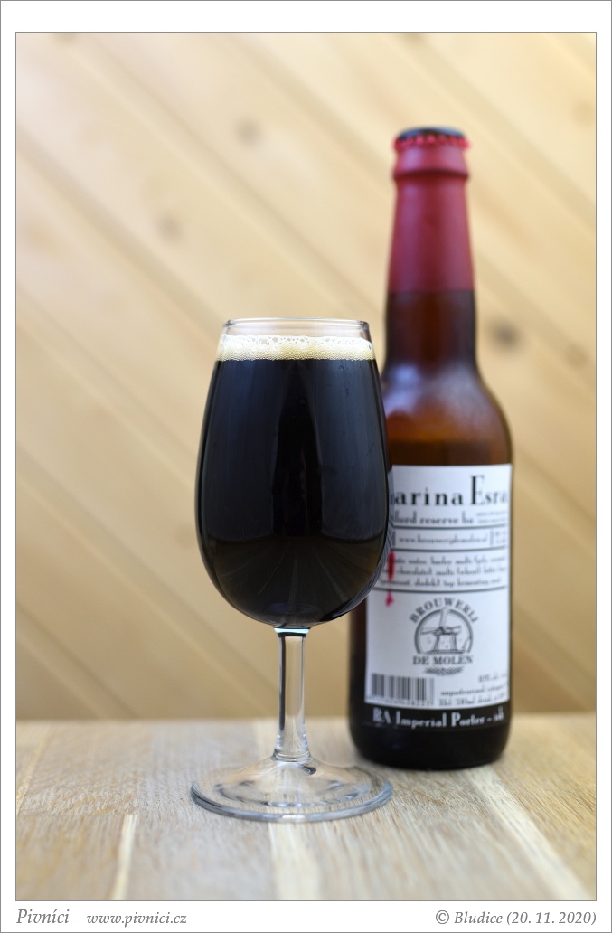 Temně mahagonová až ebenová barva, čiré. Pěkná béžová pěna, slušně drží.Vůně (4 - výborné):