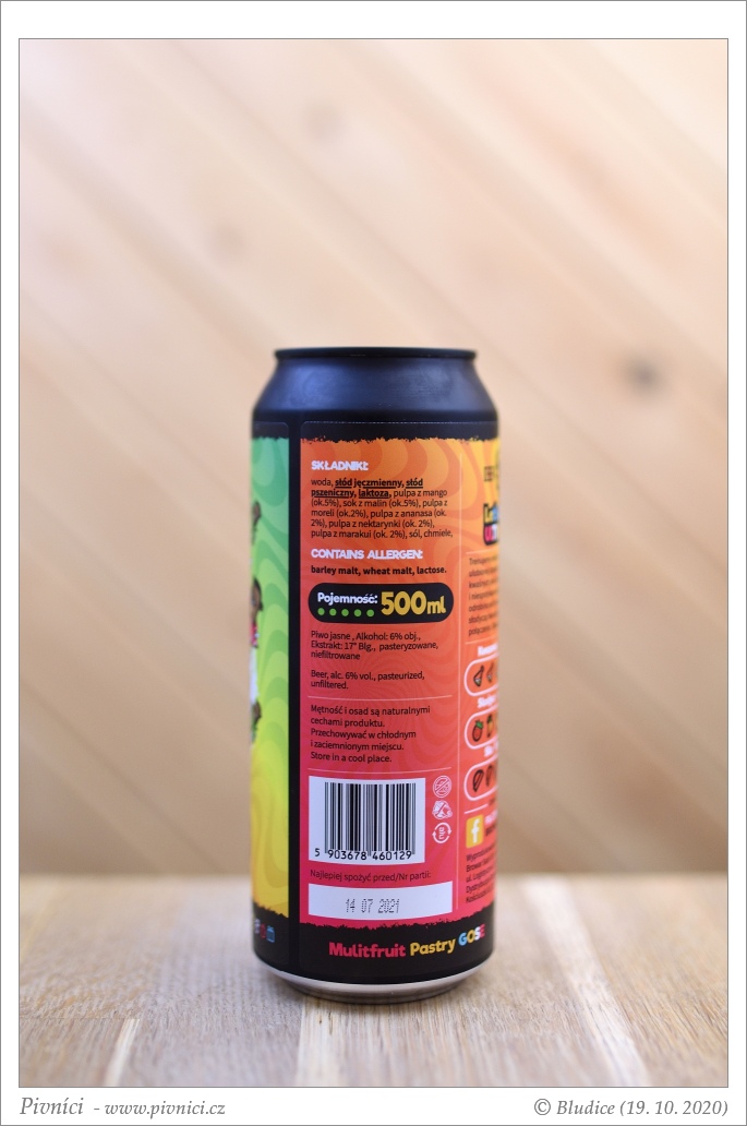 Vůně tropického ovoce (marakuja, mango), malinová, lehce citrusová (mandarinky), trochu obilná, nádech soli.Chuť (3,5 - velmi dobré):