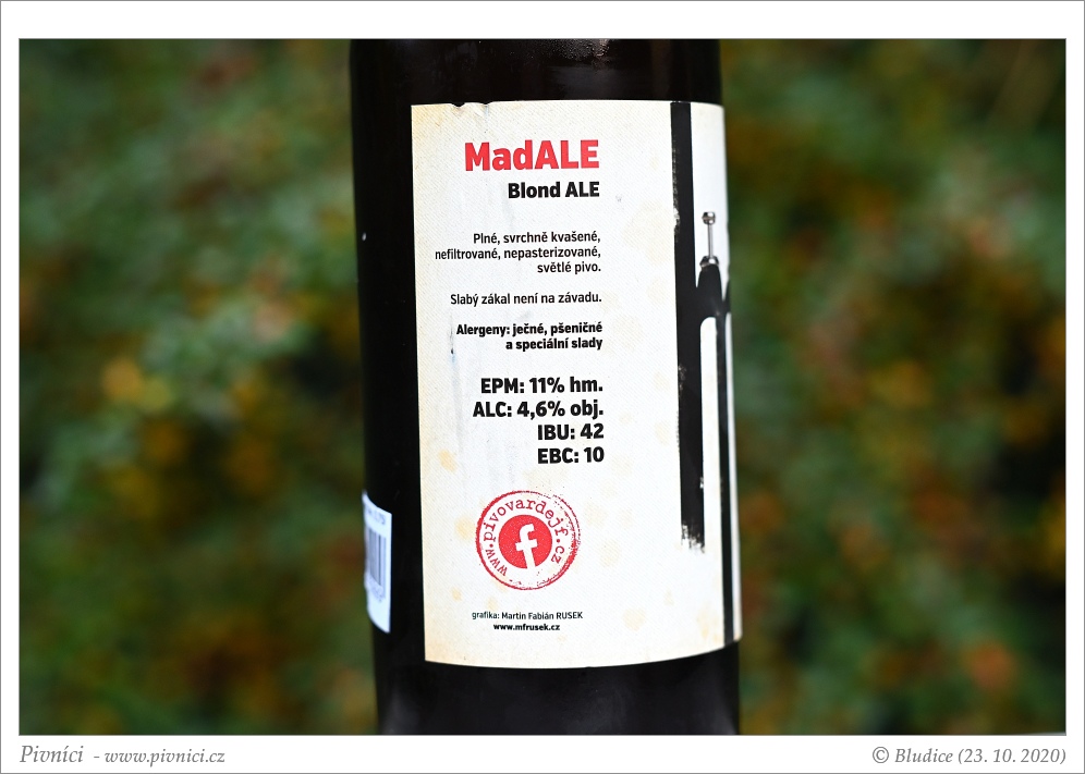 Zlatá barva, velmi lehce zakalené. Slušná světlá pěna, celkem drží.Vůně (2 - průměr):