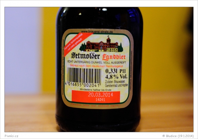 Průměrně pitelné pivo.Minimální trvanlivost: 20.3.2014