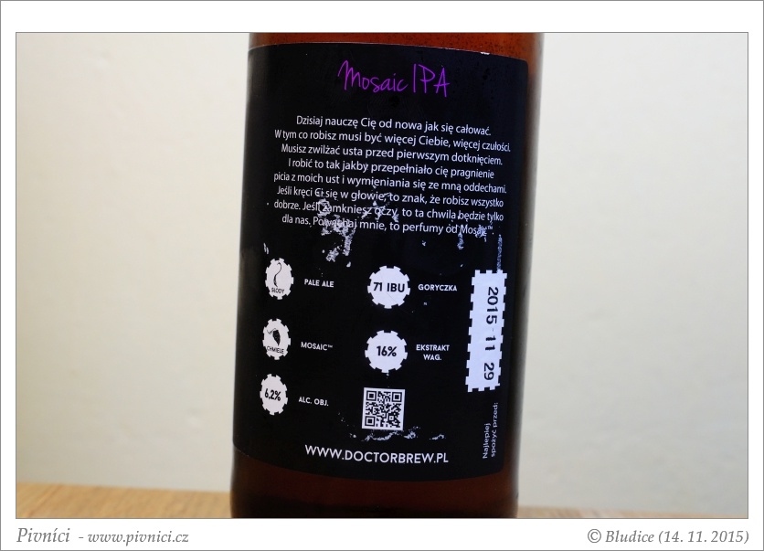 Chutná IPA, výborně se popíjí.Minimální trvanlivost: 29. listopadu 2015