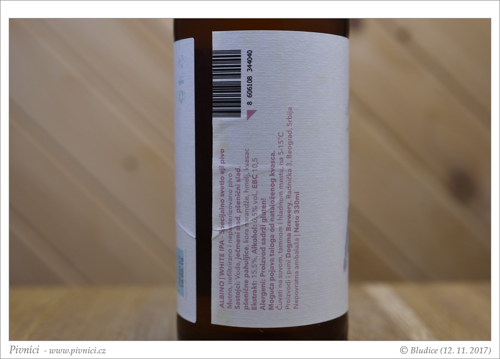 Barva světle zlatá, velmi lehce zakalené. Nižší pěkná hustá průměrně stabilní pěna.Vůně (3 - dobré):
