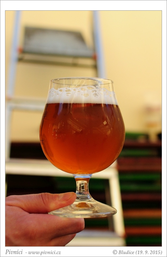 Světle měděná barva, velmi lehce zakalené, průměrná světlá pěna, celkem drží.Vůně (2,5 - lehce nadprůměr):