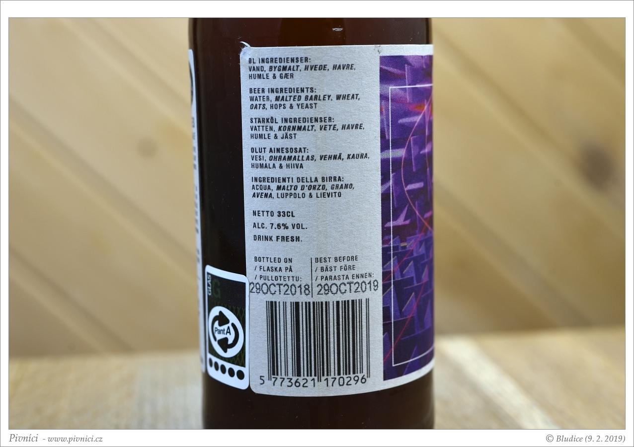 Fajn plnější a sladovější NEIPA. Velmi dobře se popíjí.Lahvováno: 29. října 2018