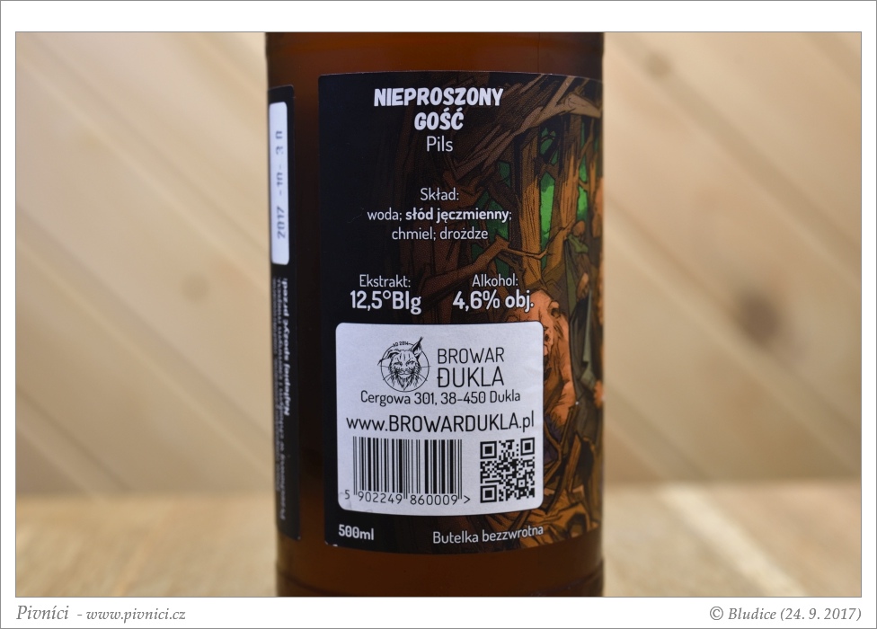Fajn ležák, trochu méně prokvašený a obilnější, ale dobře pitelný.Minimální trvanlivost: 30. října 2017