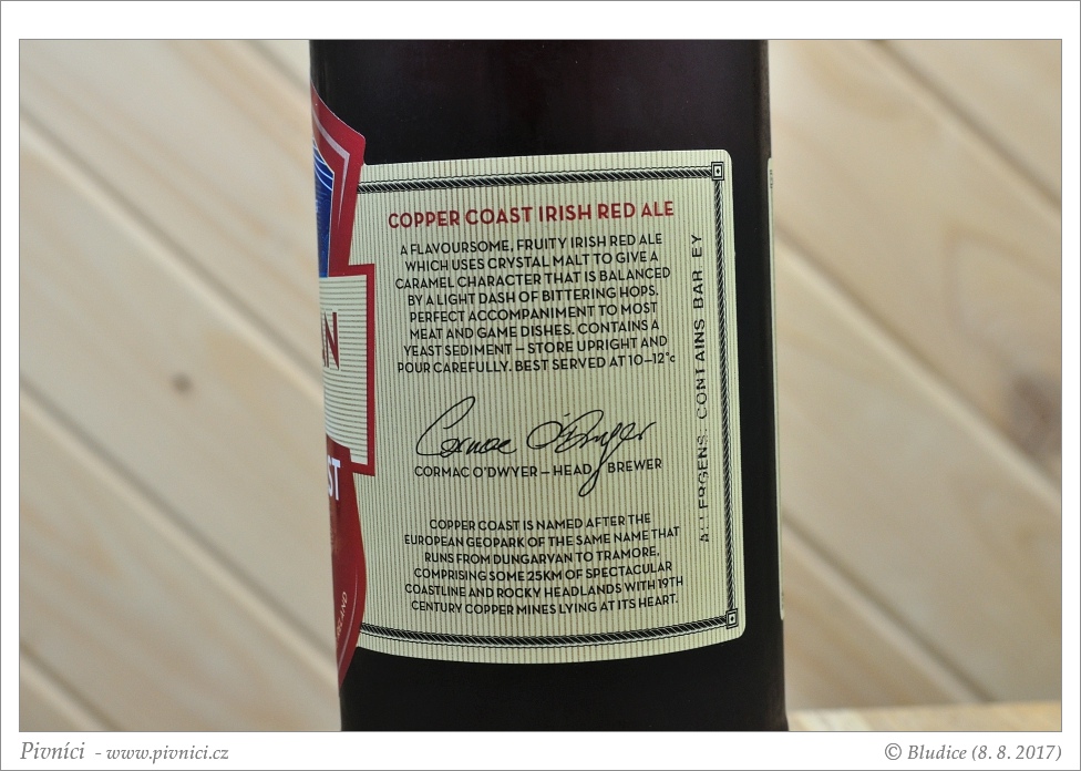 Zajímavý a velmi dobře pitelný irský ejl.Vzhled (3,5 - velmi dobré):