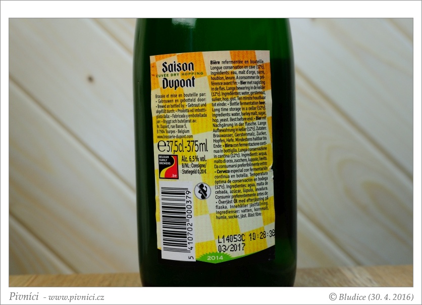 Svěží a chutný Saison. Výborně se popíjí. Za čerstva musel být ještě lepší.Lahvováno: 2014