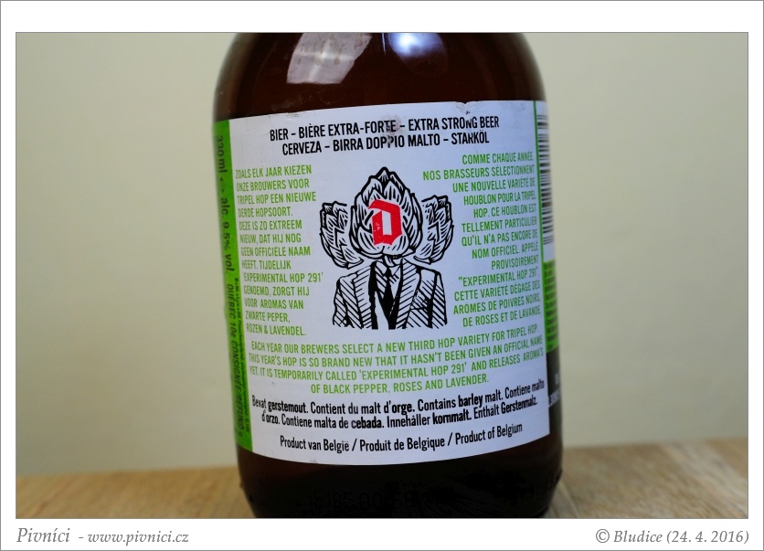 Výborné, výrazně chmelené pivo se zajímavou chmelovou chutí. Skvěle se popíjí.Minimální trvanlivost: 31. srpna 2017