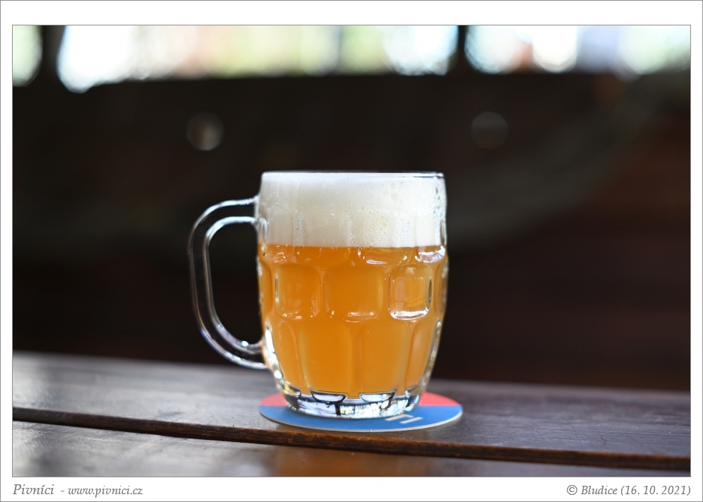 Barva zlatá, lehce zakalené. Pěkná hustá stabilní pěna.Vůně (2,5 - lehce nadprůměr):