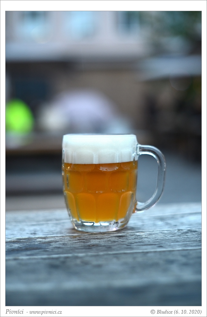 Zlatá barva, středně zakalené. Pěkná světlá pěna, dobře drží.Vůně (3 - dobré):