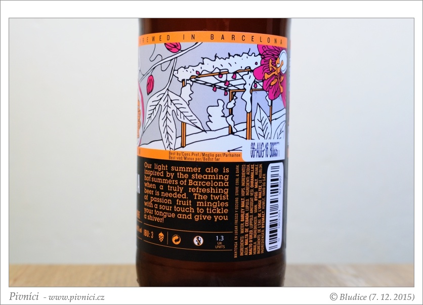 Dosti prázdné, pivo příliš nepřipomínající, ale čisté a osvěžující. Dobře se pije.Minimální trvanlivost: 6. srpna 2016