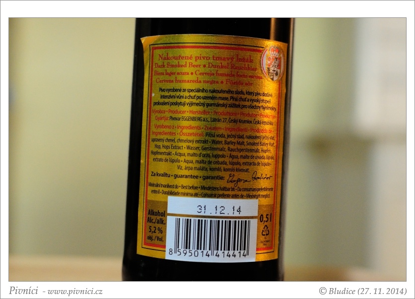 Celkem dobře pitelné nakuřované pivo.Minimální trvanlivost: 6.6.2014