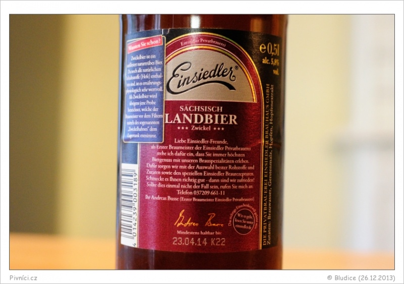 Dobře pitelný Zwickel s příjemným dozníváním a trochu drsnější hořkostí. Bezva poměr cena / výkon.Minimální trvanlivost: 23.4.2014