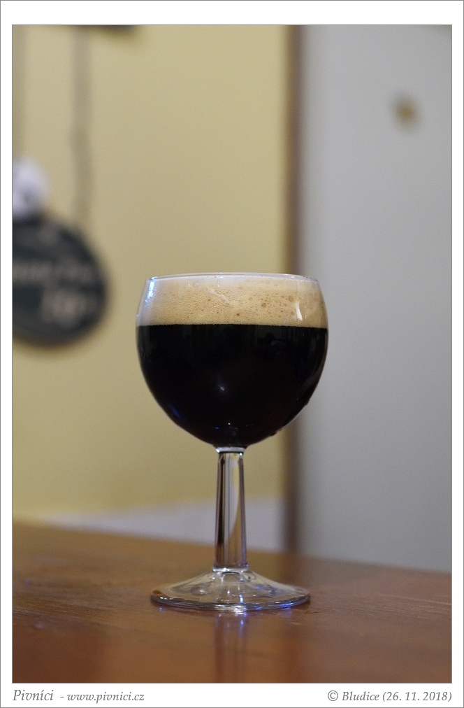 Střední říz, velmi plné. V chuti nasládlé, pražené, velmi lehce karamelové, kávové, vyšší hořkost, velmi lehce alkohol. Dlouhé a velmi výrazně kávové doznívání. Alkoholová hřejivost na závěr. Jemný říz a krémova struktura.Celkový dojem (9,5 - výjimečné pivo):