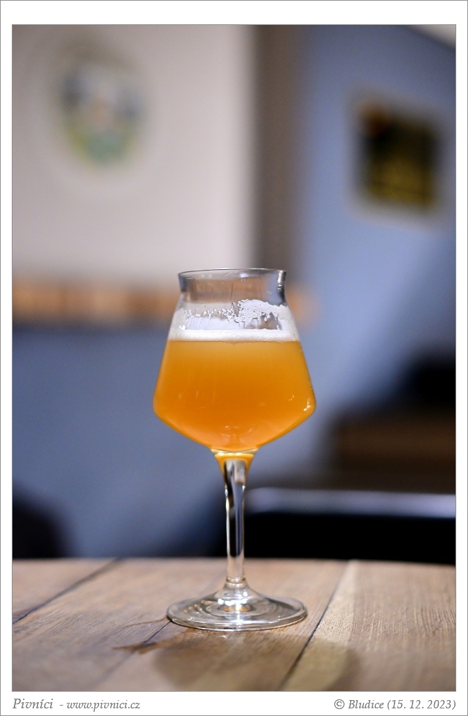 Tmavší zlatá barva, spíše více zakalené. Pěkná světlá pěna, dobře drží.Vůně (3 - dobré):