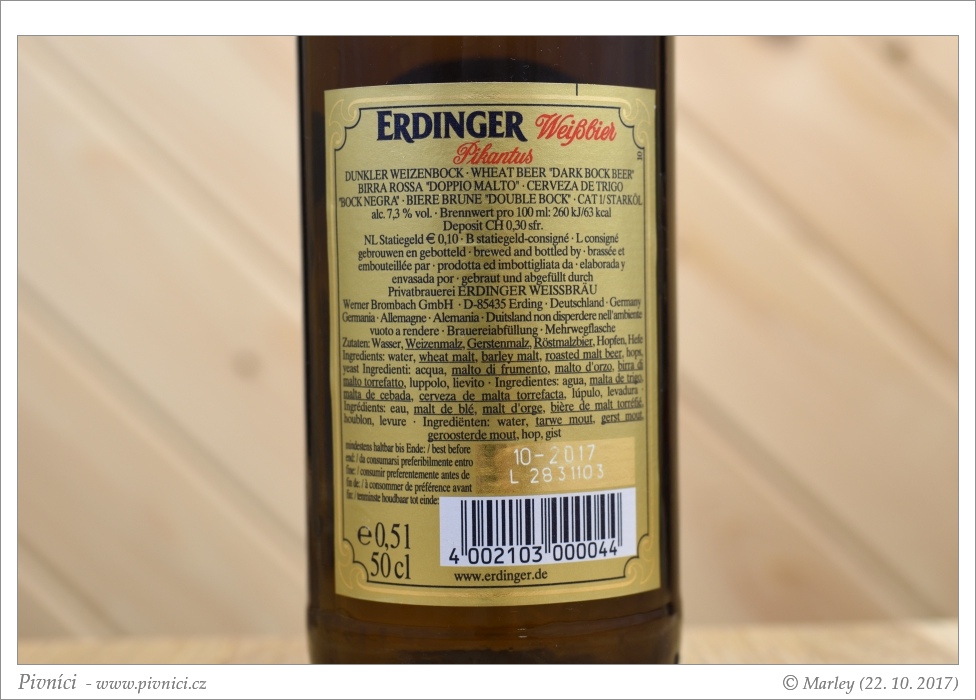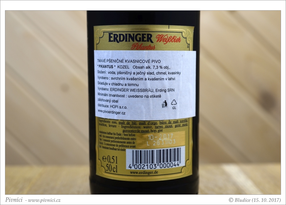 Chutná tmavá pšenice. Velmi dobře se popíjí.Minimální trvanlivost: 31. října 2017