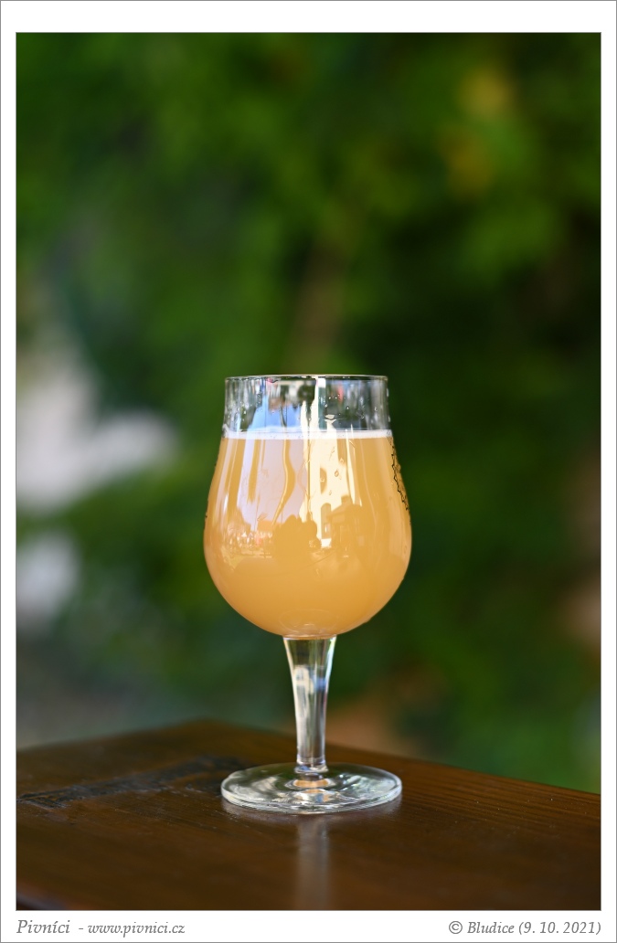Světle zlatá barva, více zakalené. Pěkná světlá pěna,Vůně (4 - výborné):