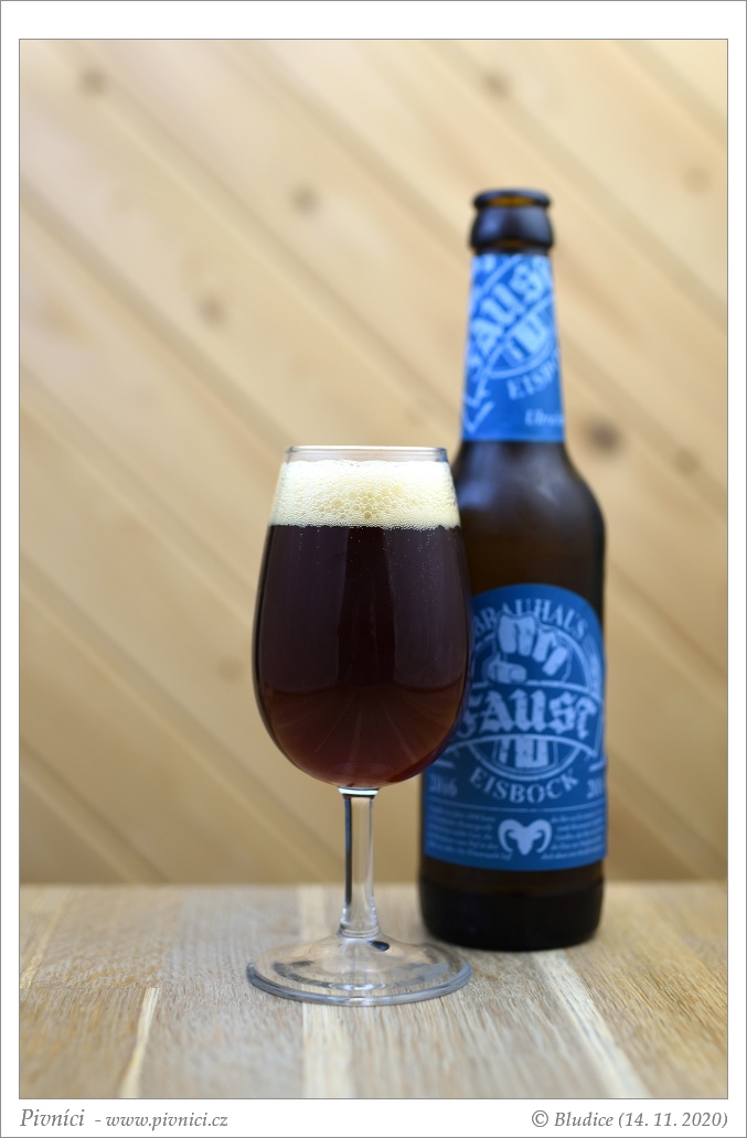 Mahagonová barva, čiré. Pěkná světlá pěna s okrovým nádechem, dobře drží.Vůně (4 - výborné):