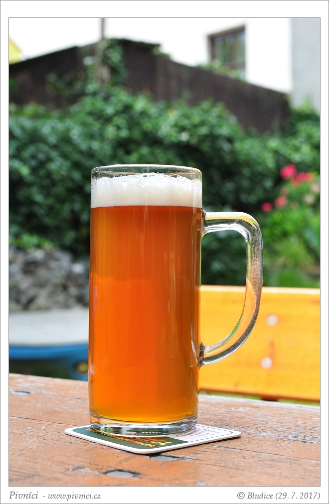 Barva zlatá, zakalené. Pěkná hustá stabilní pěna. Kroužkuje.Vůně (3 - dobré):