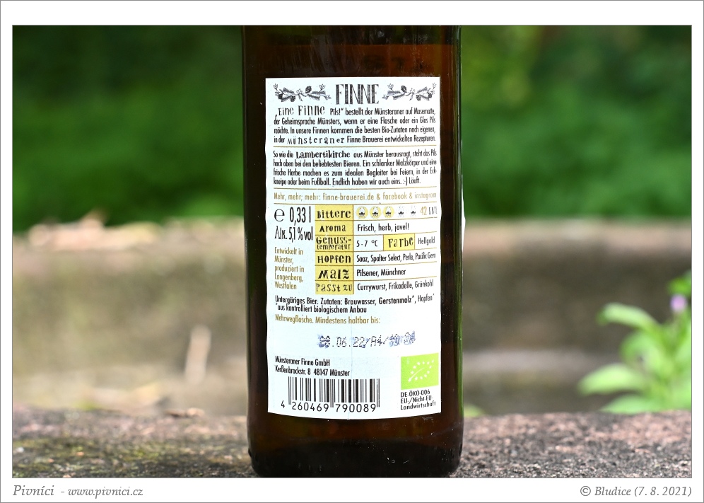 Zlatá barva, čiré. Pěkná světlá pěna, dobře drží.Vůně (3,5 - velmi dobré):