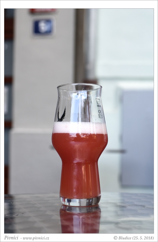 Barva růžová, zakalené. Pěkná poměrně hustá průměrně stabilní pěna.Vůně (2 - průměr):