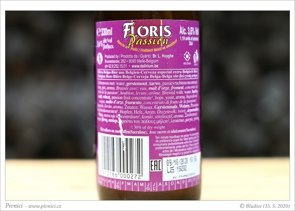 Vůně sladší, sladová, nakyslá, s tóny mučenky a Bon Pari.Chuť (2,5 - lehce nadprůměr):