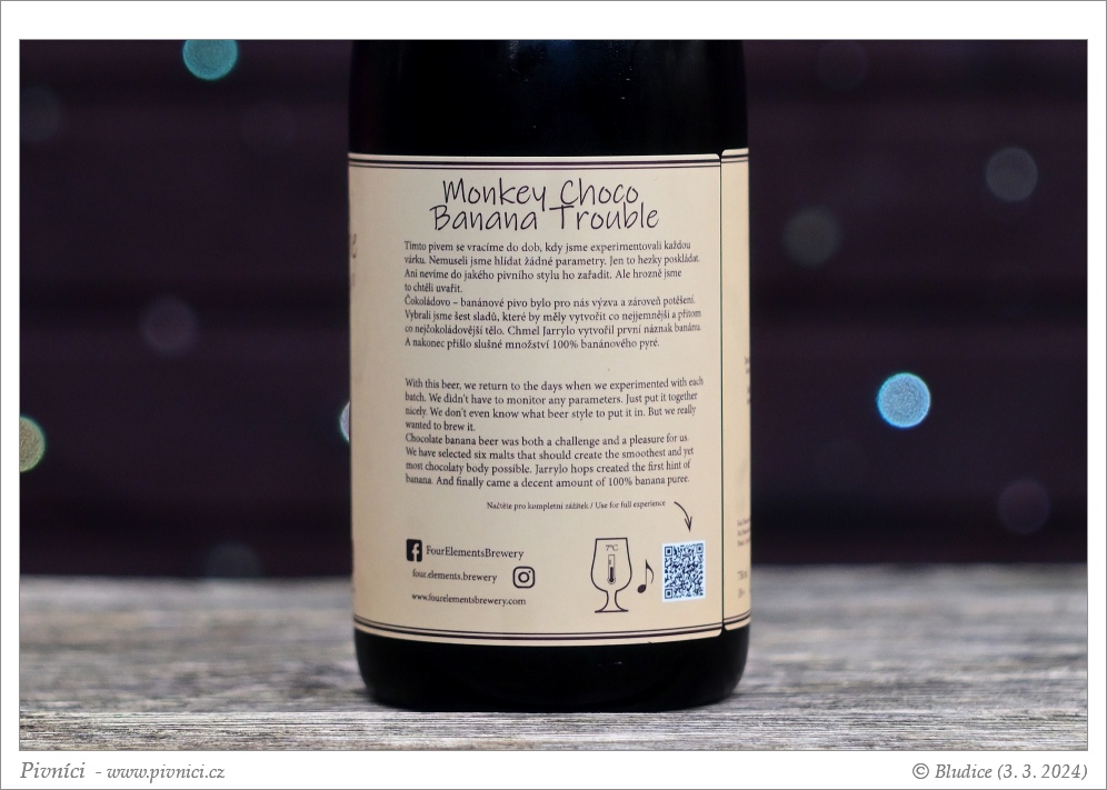 Vůně čokoládová, banánová, lehce hřebíčkoví, trochu karamelová a jablečných křížal.Chuť (3,5 - velmi dobré):