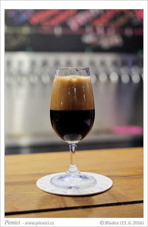 Barva černá. Pěkná hustá stabilní pěna béžové barvy.Vůně (3,5 - velmi dobré):