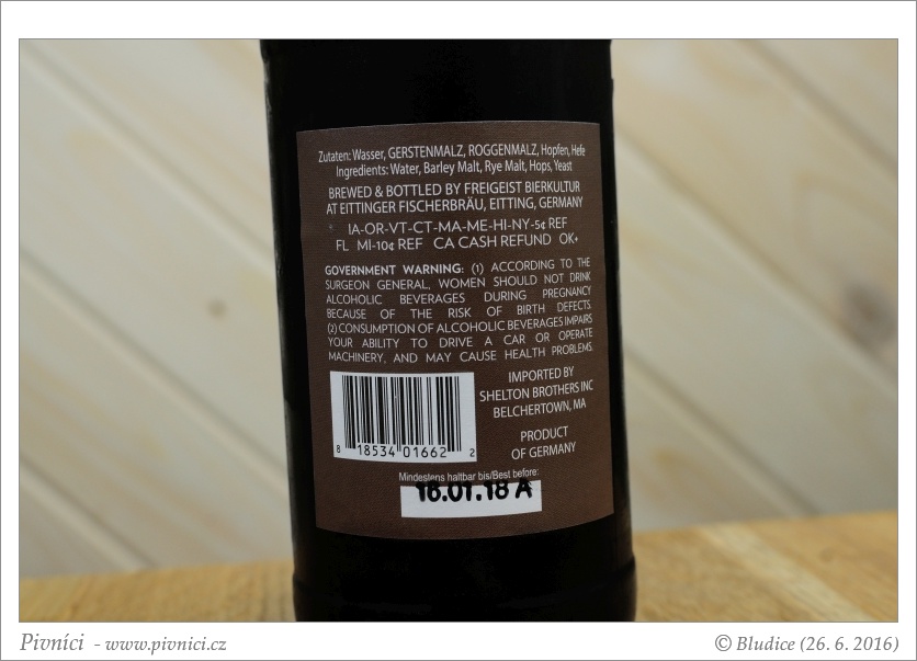 Chutný silný bock, výborně se popíjí.Minimální trvanlivost: 16. ledna 2018