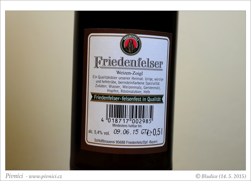 Tmavší zlatá barva, středně zakalené, slušná světlá pěna, průměrně drží.Vůně (3,5 - velmi dobré):