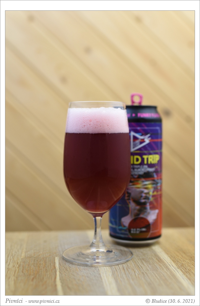 Tmavě rubínová až lehce fialová barva, více zakalené. Pěkná světlá pěna s růžovým nádechem, slušně drží.Vůně (3,5 - velmi dobré):