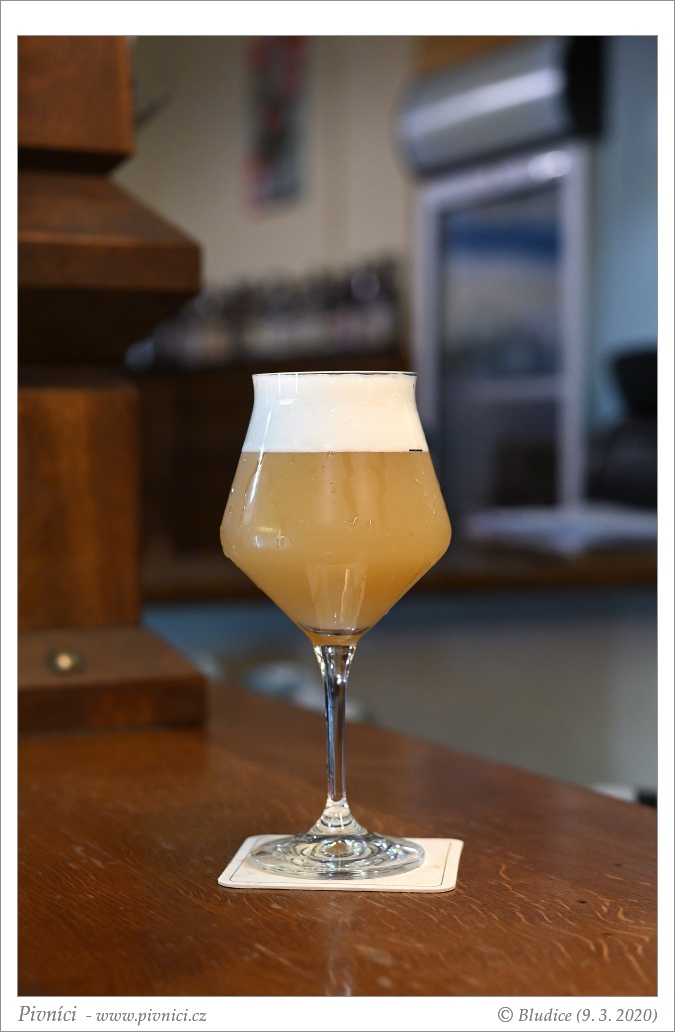 Barva slámová, zakalené. Pěkná hustá stabilní pěna.Vůně (3 - dobré):