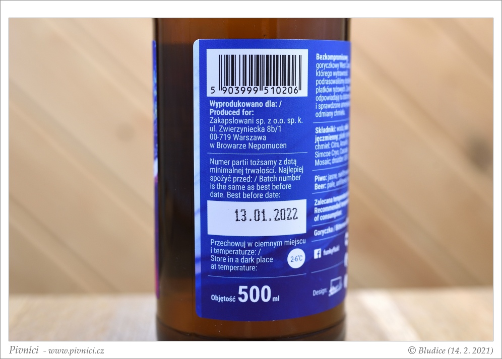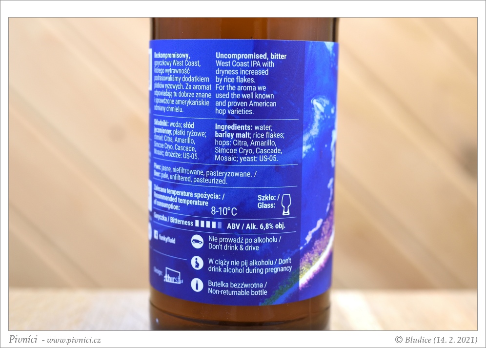 Chutná a vyvážená IPA se zajímavým chmelením. Výborně se popíjí.Minimální trvanlivost: 13. ledna 2022