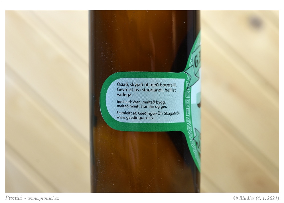 Barva zlatá, lehce zakalené. Pěkná hustá stabilní pěna.Vůně (3,5 - velmi dobré):
