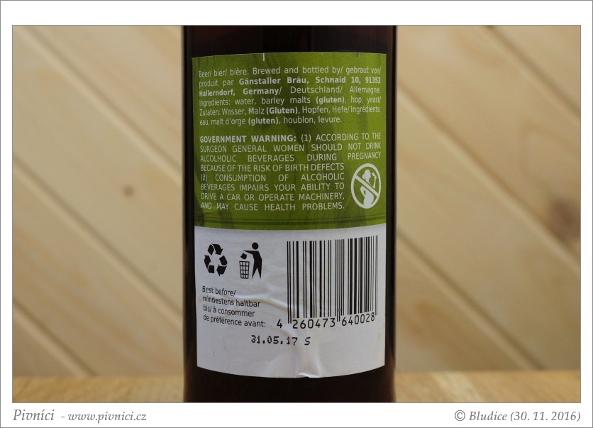 Lehce osobité, ale dobře pitelné pivo. Nicméně jsem od takového piva a vůbec od Gänstallera čekal více.Vzhled (3 - dobré):