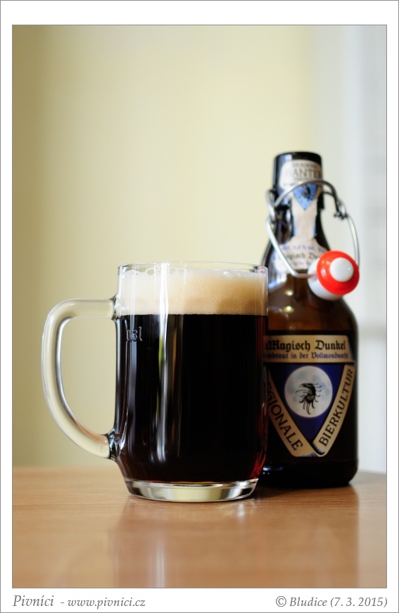 Mahagonová barva, čiré, pěkná světle okrová pěna, slušně drží.Vůně (3 - dobré):