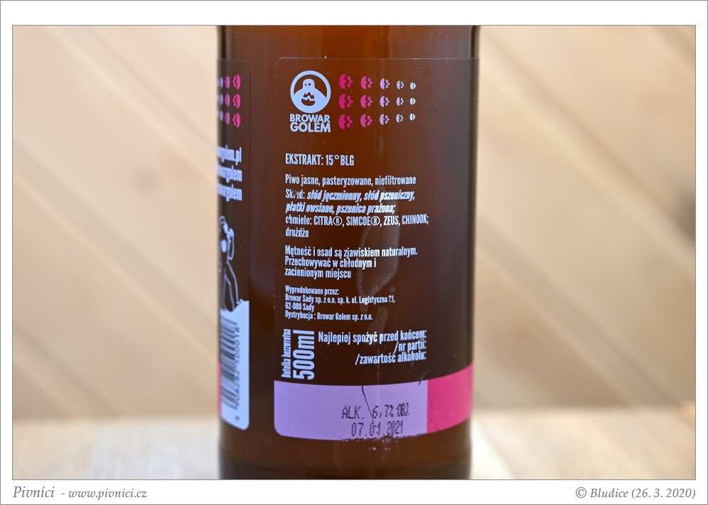 Fajn IPA, dobře se popíjí.Minimální trvanlivost: 7. ledna 2021
