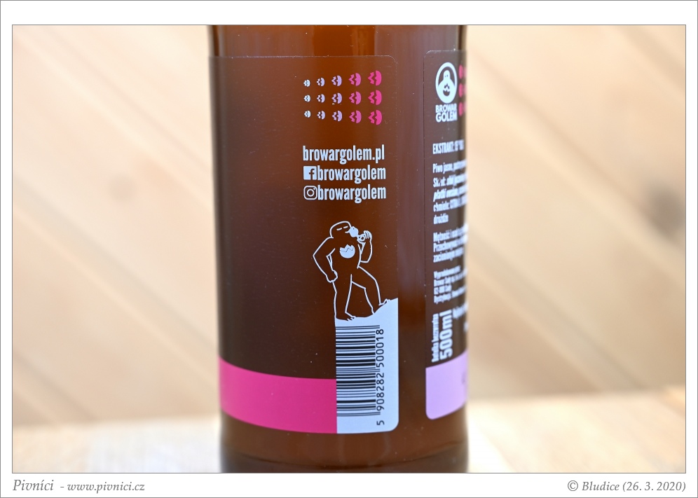 Zlatá barva, téměř čiré. Pěkná světlá pěna, slušně drží.Vůně (3 - dobré):