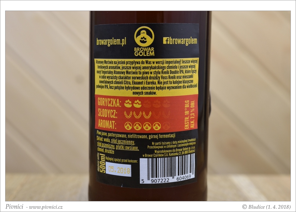 Zajímavé pivo, sice trochu divočina, ale pije se dobře.Minimální trvanlivost: 31. května 2018