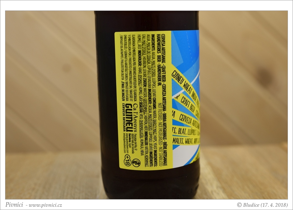 Barva zlatá, velmi lehce zakalené. Nižší pěkná hustá poměrně stabilní pěna.Vůně (3 - dobré):