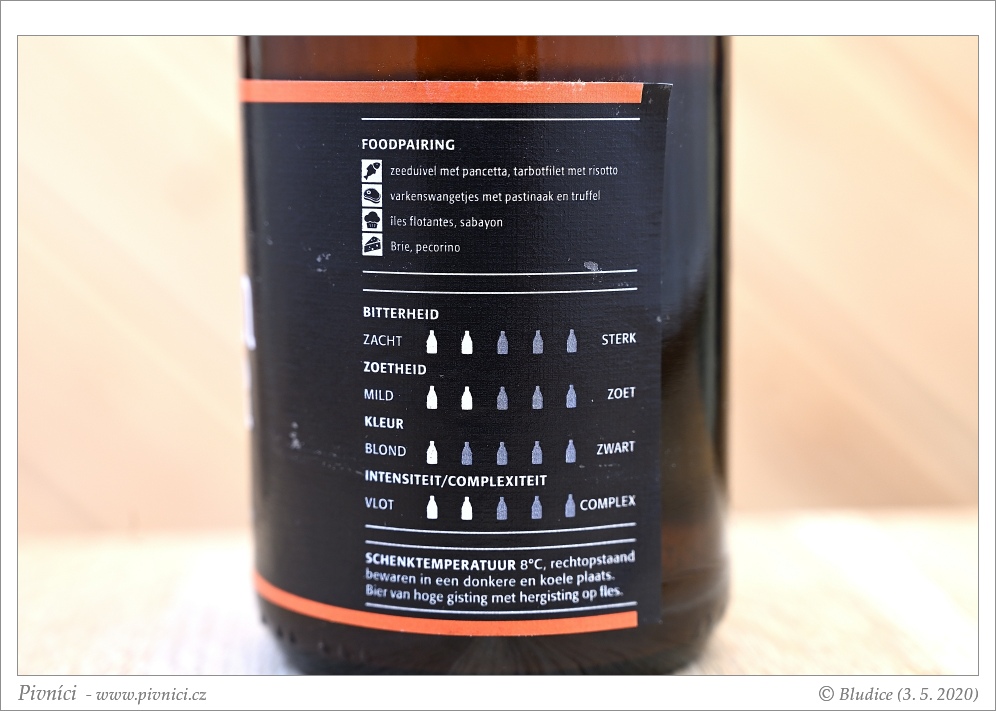 Vůně sladová, peprná, výrazně kořeněná (koriandr), zemitá.Chuť (3,5 - velmi dobré):