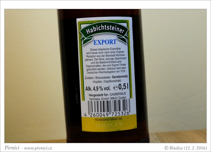 Průměrně pitelné pivo.Minimální trvanlivost: 10. května 2016