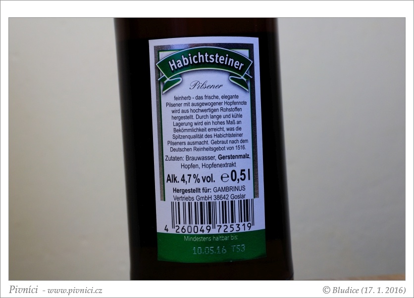 vařeno v neznámém pivovaru pro Gambrinus Vertriebs