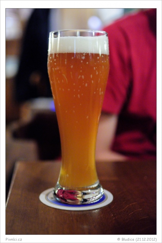 Zlatá barva, velmi zakalené, hezká bílá pěna.Vůně (4 - výborné):
