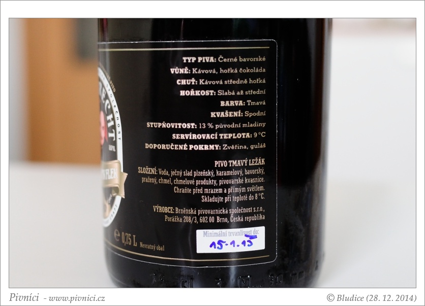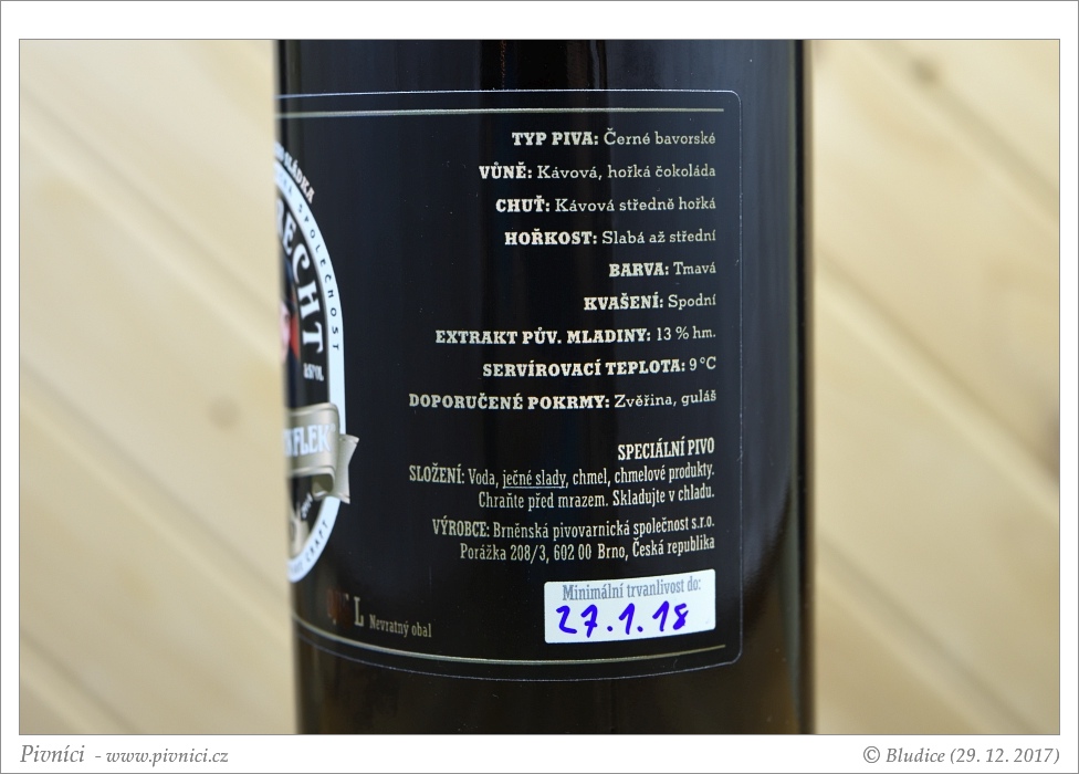 Chutné vyvážené tmavé pivo, velmi dobře se popíjí.Minimální trvanlivost: 27. ledna 2018