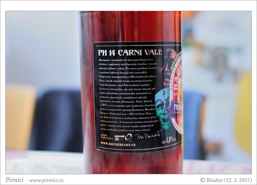 … ale nám docela chutnalo. Druhé pivo je Carni Vale, masopustní spodně kvašená čtrnáctka, na aroma chmelená českým …