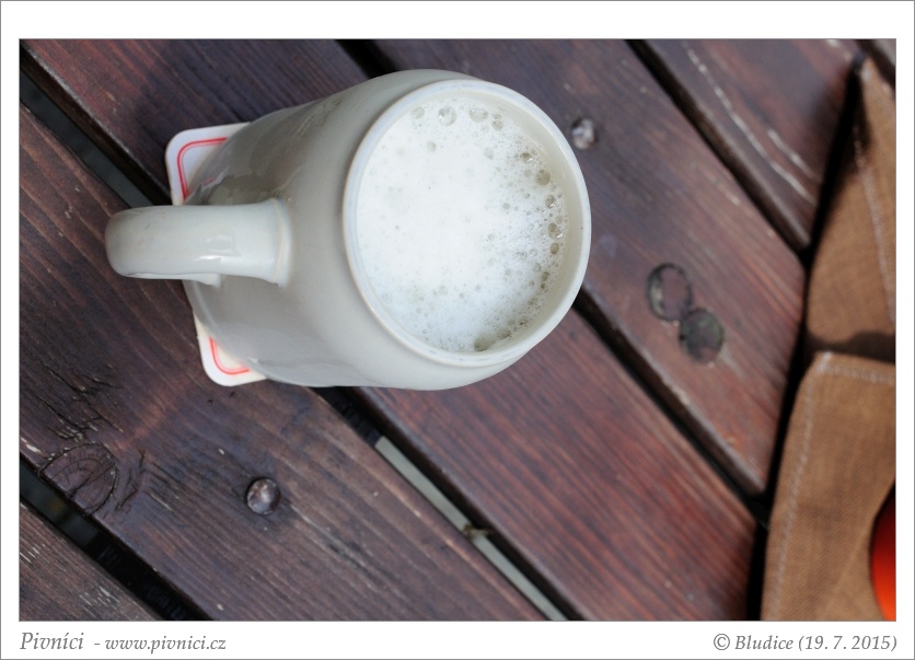 Asi zlatá barva, asi čiré (v kameninovém půllitru), pěkná světlá pěna, slušně drží.Vůně (3,5 - velmi dobré):