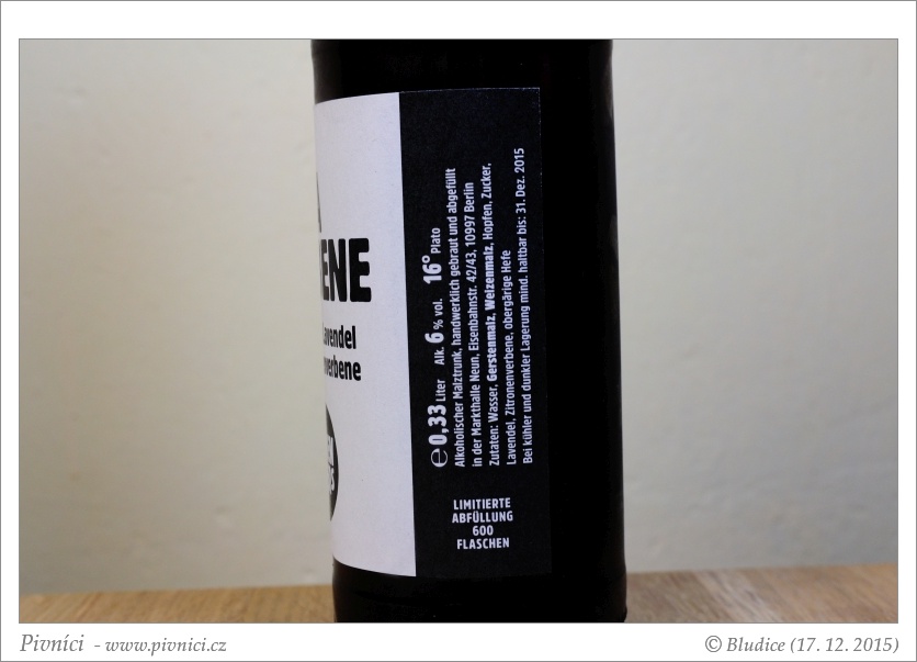 Divočina, kombinace chutí pro mě moc nefunguje, ale vyloženě špatné pivo to není.Minimální trvanlivost: 31. prosince 2015