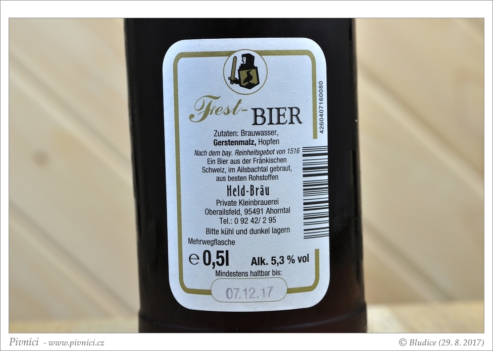 Okej pivo, celkem dobře pitelné.Minimální trvanlivost: 7. prosince 2017