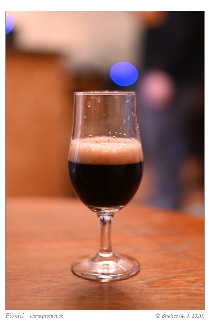 Barva tmavě mahagonová. Nižší poměrně stabilní pěna béžové barvy.Vůně (3 - dobré):